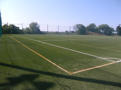 メンテナンス完了後です。芝が立ち上がり、鮮やかな緑色が蘇りました。安全性も向上し、安心してプレーできる環境が整いました。